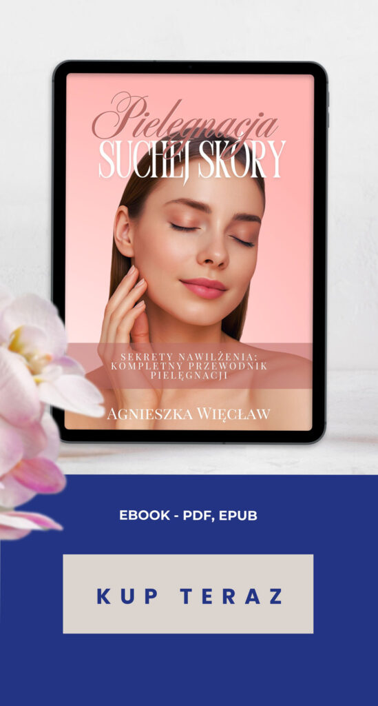 Jeśli zauważasz u siebie któryś z tych błędów, spróbuj zmienić nawyki już dzisiaj. A jeśli potrzebujesz pełniejszej wiedzy, więcej praktycznych wskazówek i gotowego planu działania, zapraszam Cię do mojego kompleksowego e-booka „Pielęgnacja suchej skóry”. Z nim nauczysz się świadomie dbać o swoją cerę, a efekty zauważysz szybciej niż się spodziewasz.